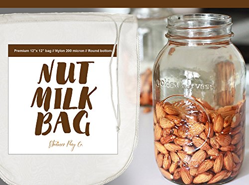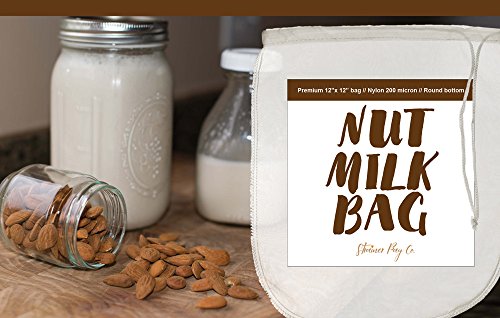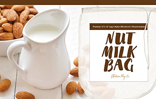 Strainer Bag Co Nut Milk Bag-Large 12"X12"-Reusable all purpose Food Strainer or Cold Brew Coffee Filter-Fine Mesh 200 Micron Nylon Bag-Free Recipe on back of Label + Free E-book