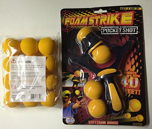 Product Description Foam Strike Pocket Shot And Pocket Shot Replacement Ammo (12 Extra Balls) Bundle Set 8357 . Ultra-soft foam ammo. Made using safe and high quality materials. A toy for all age groups. Shoots over 40 feet! 0