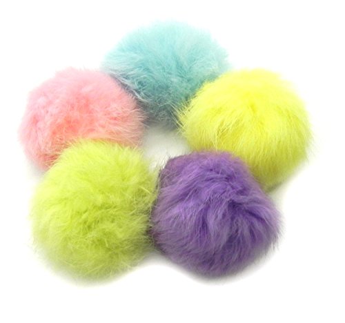 -. Feature : 100% Real Rabbit Fur in Brand New Colors / Assorted Kitten Colors, Soft Pink, Light Blue, Purple, Pale Yellow, Sea Green / Measures about 1 1/2 inch to 2 inches / Rabbit fur Pom Pom Balls perfect cat toy for Cats or Kittens / Cat Toys - Tons of Fun for your Cat or Kitten