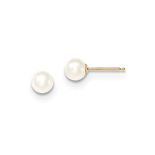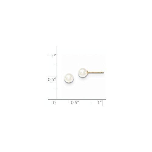 Solid 14k Yellow Gold 5-6mm White Round FW Cultured Pearl Stud Earrings