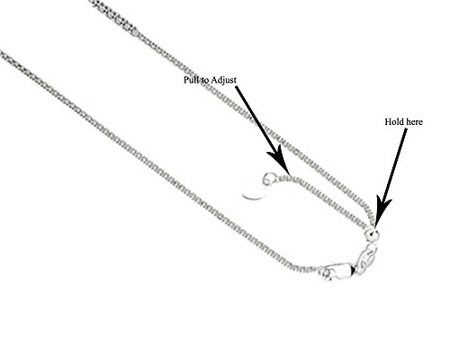 14k White Gold 22 Inch bright-cut Adjustable Popcorn Chain Necklace Lobster Clasp and Small Heart Charm