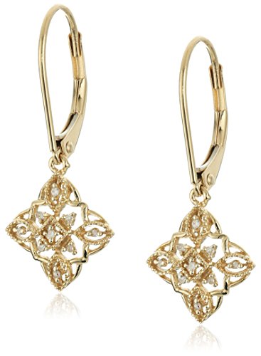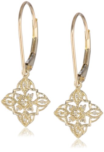 The 10k Gold Diamond Lever Back Floral Design Earrings stunningly combine timeless design with radiant accents for an elegant, dramatic look. These delicate 10k gold lever-back earrings showcase an ornate floral pattern, evocative of lace in its intricacy. The negative space in the intricate pattern is strikingly accented by 18 round-shape glistening diamonds weighing 1/20 carats and sporting I-J color and I3 clarity, adding lustrous shine to the body of the leaf-like shapes. With a classic, sophisticated look, these luminous earrings are chic enough to accompany a dashing gown yet subtle enough to pair with a casual blouse.Feature