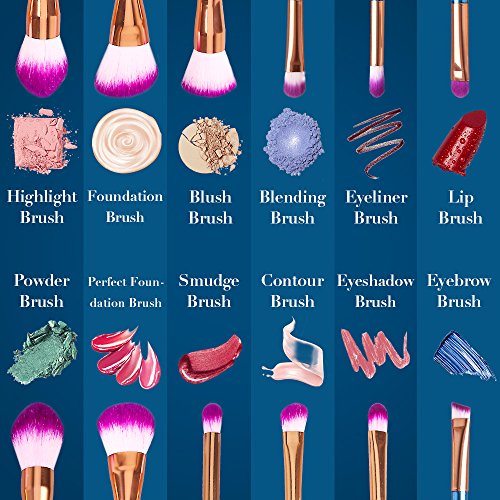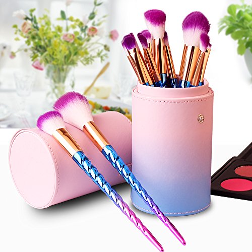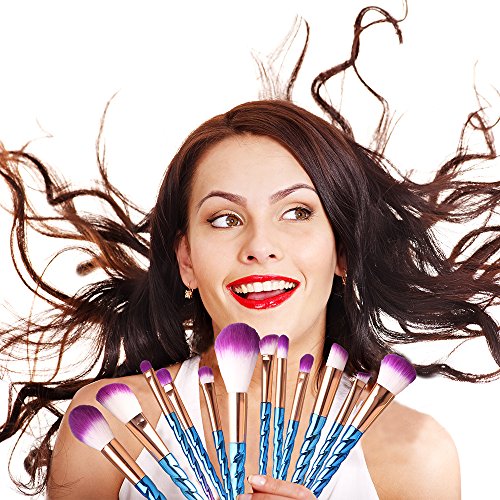 Makeup Brushes Set Colorful Unicorn 12Pcs Foundation Eyebrow Eyeliner Eye-shadow Brush Cosmetic Conceler Brushes Kit Tool (Purple)