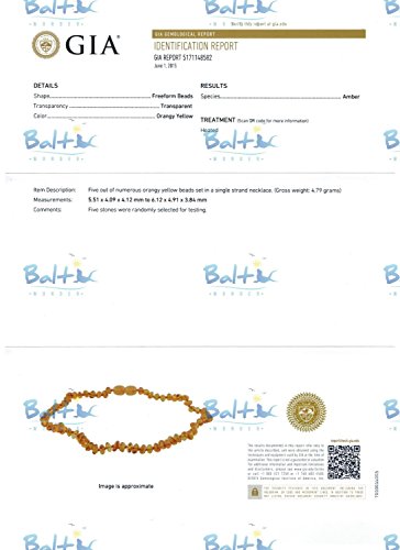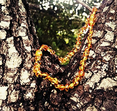 Baltic Amber Teething Necklace For Babies (Unisex) (Honey) - Anti Flammatory, Drooling & Teething Pain Reduce Properties - Natural Certificated Oval...