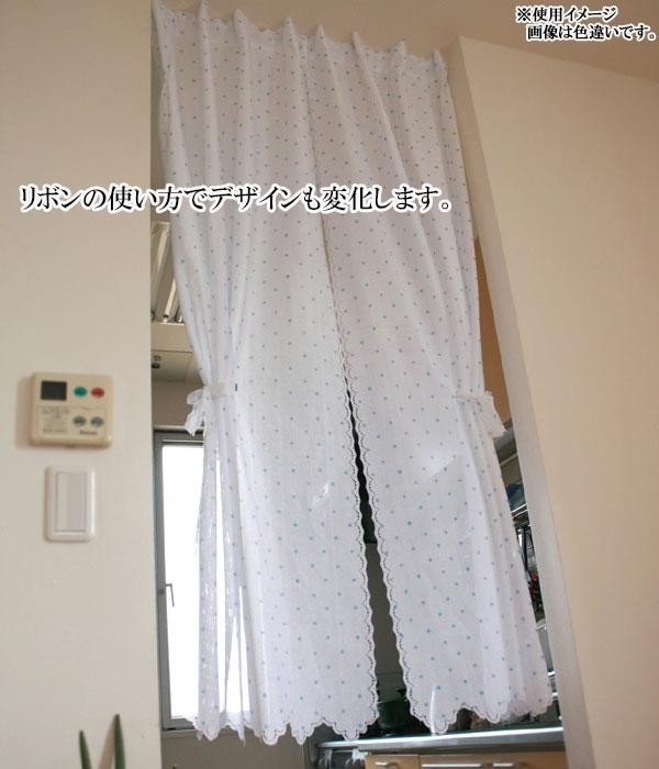 お手持ちのポール(つっぱり棒)にかけてお使いいただくタイプです。優しい水玉柄のやわらかい素材で作ったドレープのきれいなスタイルのれんです。リボンの使い方でデザインも変化します。 |