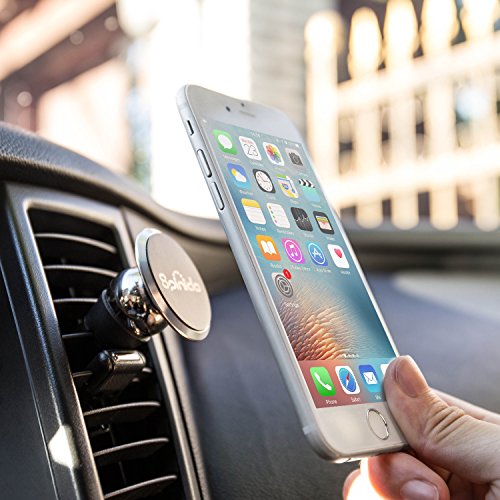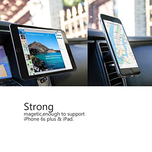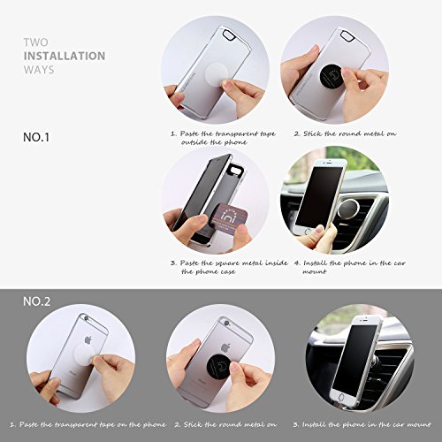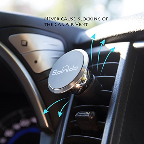 Features 1) navigation is extremely easy with this magnetic car mount kit. It can easily rotate, fix, or tilt to any angle that best assists the viewer of the phone even iPad. 2) it-adhesion magnetic car vent mount for cell phones is not bulky or space consuming at all. You are no longer have to suffice for keeping your phone in the cup holder or dashboard, because a normal car mount gets in the way. Ti-adhesive magnetic car mount kit inserts into the air vent, thereby not blocking your windshield. 3)the magnetic mount is safe to use, and will not harm any smartphone. The magnetic car mount is designed in a way that it provides powerful holding power as well as absorbing magnetic instability. 4)Spinido magnetic air vent car mount holder for smartphones saves you the hassle of placing your smartphone securely to make sure it doesn't fall just push it in the air vent notice: To make sure the best magnetic attraction 1. Exceeding 2mm protective shell, iron sheets must be attached to the outside. 2. Round iron sheet can only be attached to the outside of the phone shell or the phone. Tips: This car mount including 2 rectangular plates, you can take 1 for a stand and the other to glue to the inside of the phone case which will make the magnet stronger and the plate wider. Compatible with iPhone se, iPhone 6/6s, 6 plus/6s plus, 5/5s, Samsung galaxy note 5, 4,s7 edge,s6 edge, s5 and iPad, iPad mini.Feature