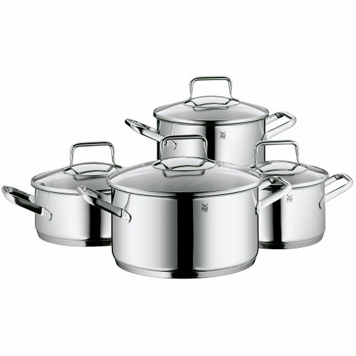 -. Binding : Kitchen -. Brand : WMF -. Color : Silver -. EAN : 0744004449914 -. Feature : Made in Germany / 18/10 Cromargan Stainless steel cookware with Trans Therm base for cooking on induction, ceramic, gas or electric stove tops / High quality glass lids allow for checking the cooking process without removing the lid / Set includes: 2.5 qt low casserole with lid, 2 qt casserole with lid, 3.5 qt high casserole with lid and 6 qt high casserole with lid / Dishwasher safe -. IsAutographed : 0 -. Label : WMF -. Manufacturer : WMF -. Model : 0768046380 -. MPN : 07.6804.6380 -. NumberOfItems : 1 -. PackageQuantity : 1 -. PartNumber : 07.6804.6380 -. ProductGroup : Kitchen -. ProductTypeName : KITCHEN -. Publisher : WMF -. Size : 8 pc -. Studio : WMF -. Title : WMF 0768046380 8-Piece Trend Cookware Set -. UPC : 744004449914