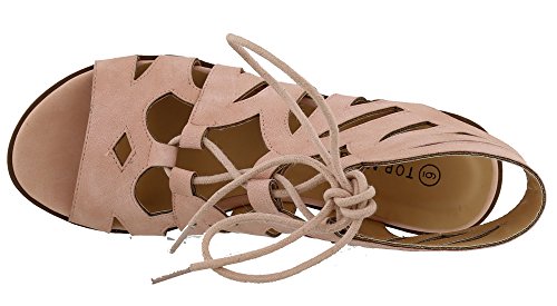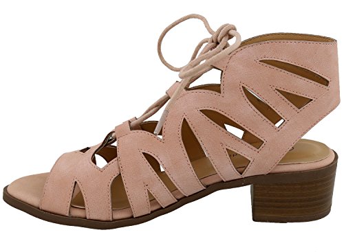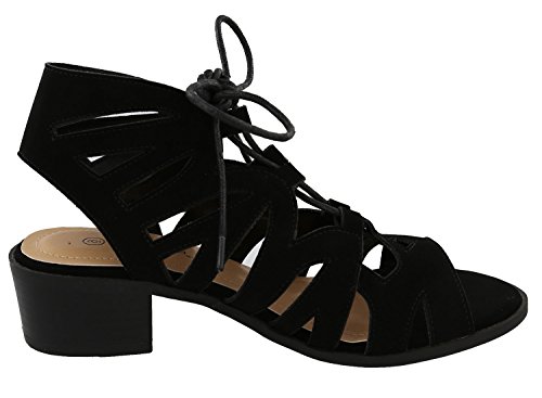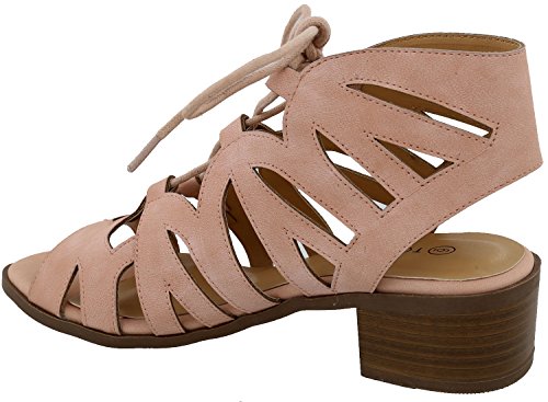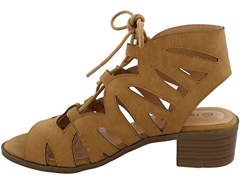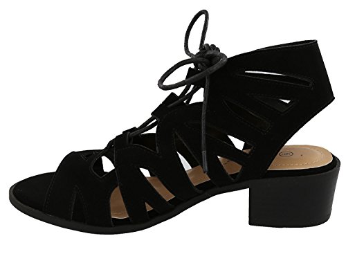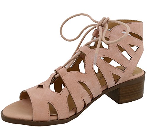 Top Moda Women's Scalloped Edge Lace Up Block Heel Sandal