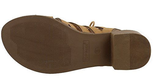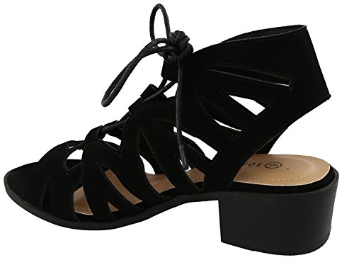 Product Description Top Moda Women's Gladiator-inspired heeled sandal is a must have for any woman! Vegan-friendly leatherette throughout with cutout design scalloped edge detailing. Low block heel. Imported. 0