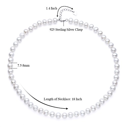 Classic 7.5-8mm Freshwater Cultured White Pearl Necklace, Princess Length 18" Package Contents: 1x Freshwater Pearl Necklace
