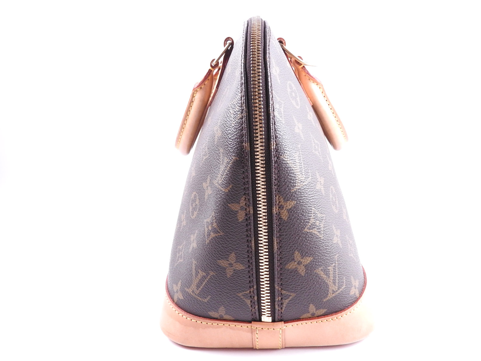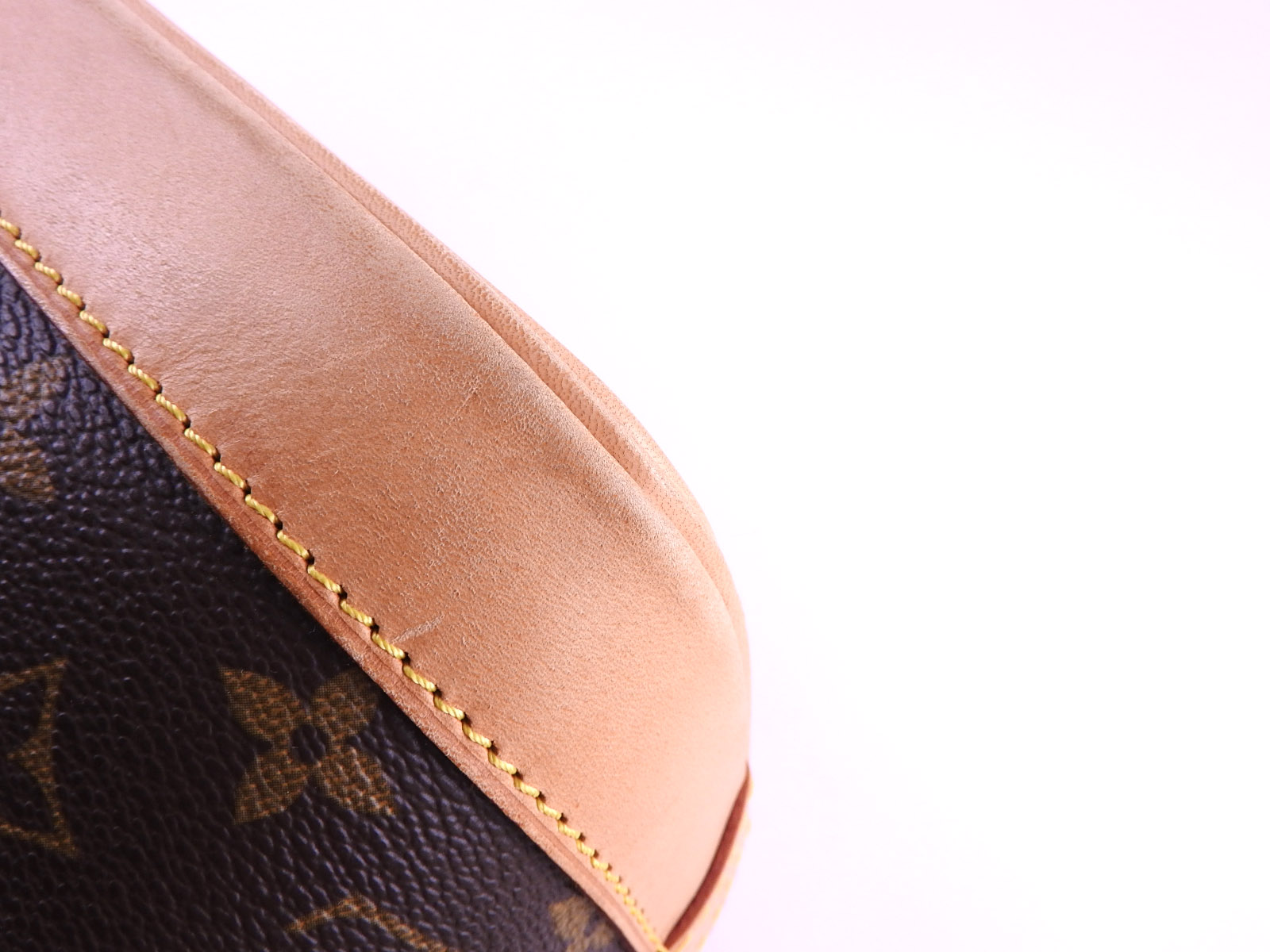 Monogram canvas: Barely used feeling. Good condition. Leather: Used feeling. Some scratches, stains, abrasions and tanning. |