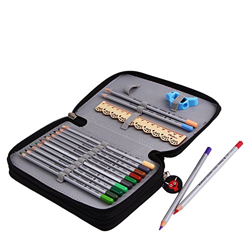 O,Like Oxford 36 Piece Colors Pencil Case Pen Bag Pouch Stationary Case Art Sketch Pencil Holder Bag Pencil Storage Case (black)