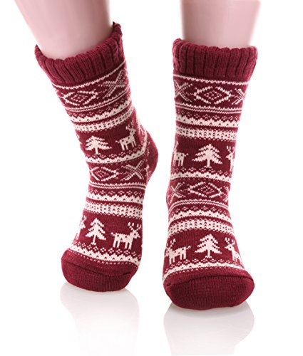 -. Feature : Thick slipper socks with cozy fleece lining, extra warm & comfy / Womens Fluffy Sherpa Lined Socks, Gripper Sole, Cozy / Toasty warm for your toes and feet for all day and night / Fun deer patterns with cute flurry cuff / Perfect Thanksgiving Christmas holiday gift!