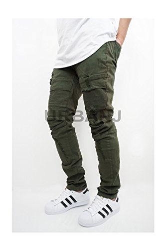 -. Title : MEN'S OLIVE DISTRESSED STRETCH SLIM FIT BIKER JEANS