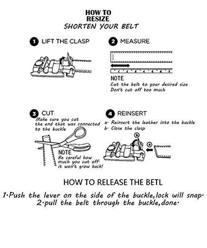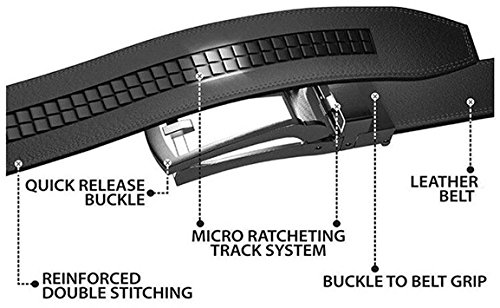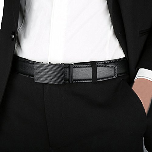 -. Feature : High Quality Buckle:We choose high quality metal buckle for durability. Our buckle has high resistance to rust,corrosion and tarnishing, which will be shiny as a new one even years later. / Sturdy Stitching:While the hardware is durable enough, stitching also needs to be sturdy to last for a long time. We uses streamlined doubled stitching in every joints in our belts. On the surface of belt, you can see the detailed contrast stitching, and even the cutting edges, no loose threads left. Sturdy yet stylish, this is a high standard craftsmanship without doubts. / Easy To Use: Slide in the strap to tighten and the belt auto locks. Lift the buckle and pull to release. Quite easy to tighten and release. Special designed for men in dress suit, uniform and jeans / NO MORE HOLES - Dante's Fashion Ratchet Belt provides 38 unique adjustments for a superb comfortable fit. Easy removable buckle allows you to cut the belt to your ideal size to give a primmer and custom tailored appearance! / GIFT BOX PACKING - It is one of the most special gifts for Groomsmen, Birthdays, Anniversaries, Father's Day, Christmas and other Special Occasions