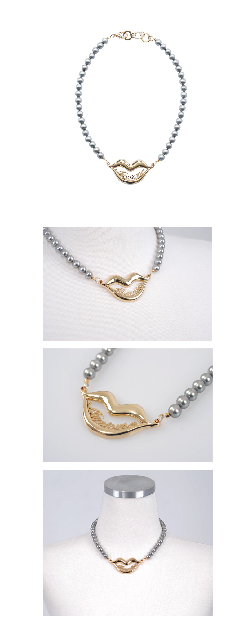 | SHINE ON LIP COLLECTION: SHINE ON LIP 컬렉션에서는 입술이 주는 시각적인 요소와 감정적인 요소에 영감을 받아 다양한 디자인의 주얼리를 연출했습니다. 입술에서 보여지는 감정, 입술의 라인, 입술의 부드러움과 강렬함이 교차되는 느낌, 입술이 만들어내는 형태들에서 다양한 영감을 받았으며, 입술은 하나의 오브제로 착용자에게 다양한 감성을 느낄 수 있도록 디자인 했습니다. PRODUCT DETAIL: 이 제품은 입술 디자인에 Awesome의 문구가 들어간 목걸이입니다. 8mm의 진주 목걸이로 세련된 느낌을 더해주며, 캐주얼하면서 목걸이 하나만으로 포인트주기에 적당한 제품입니다. 소재는 황동 + 16k 골드도금으로 제작되었고, 사이즈는 프리입니다. (사이즈 조절 가능) 글리츠 앤 노블은 모든제품을 직접 제작함으로써, 주문이 들어온 후에 제작하게됩니다. 주문하고 제품을 받을 수 있는 기간은 2일 ~ 5일 소요될 수 있습니다. |