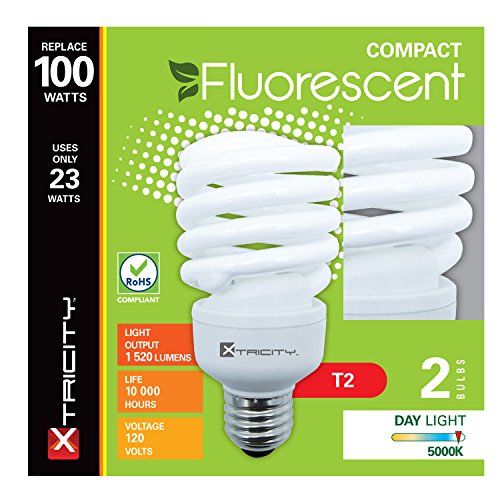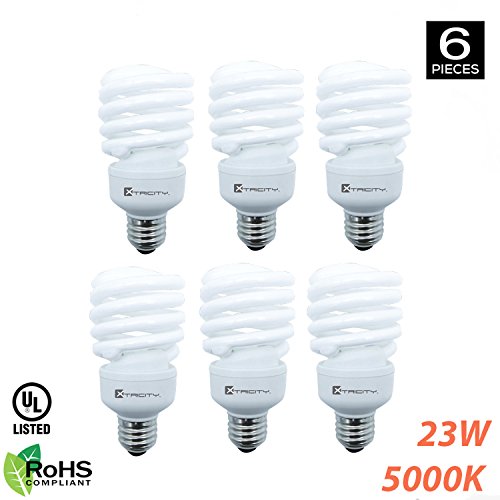Compact Fluorescent Light Bulb T2 Spiral CFL, 5000K Daylight, 23W (100 Watt Equivalent), 1600 Lumens, E26 Medium Base, 120V, RoHS Compliant and UL Listed (Pack of 6)