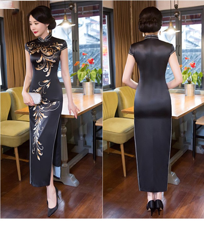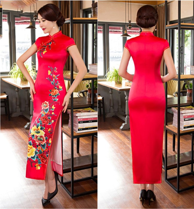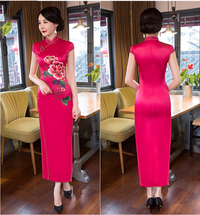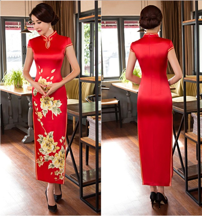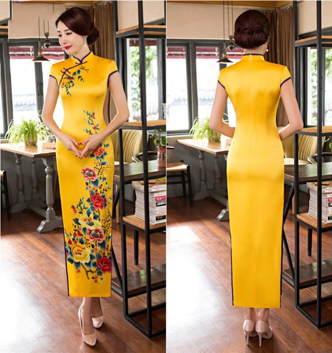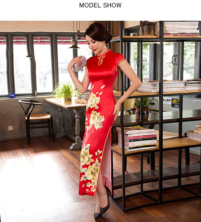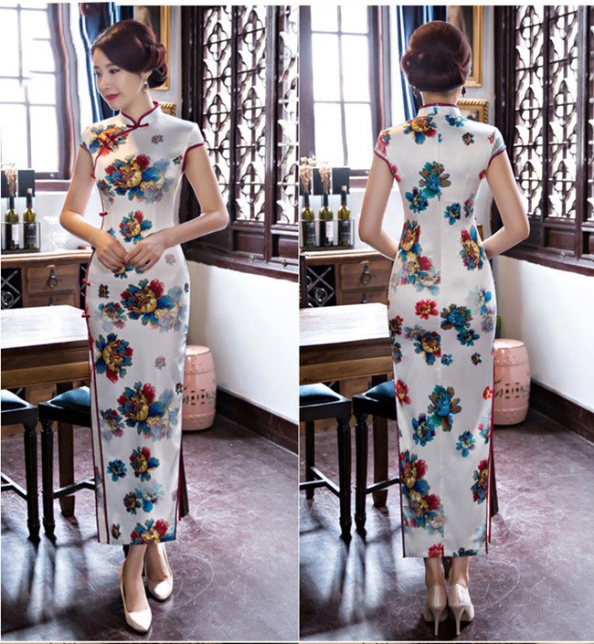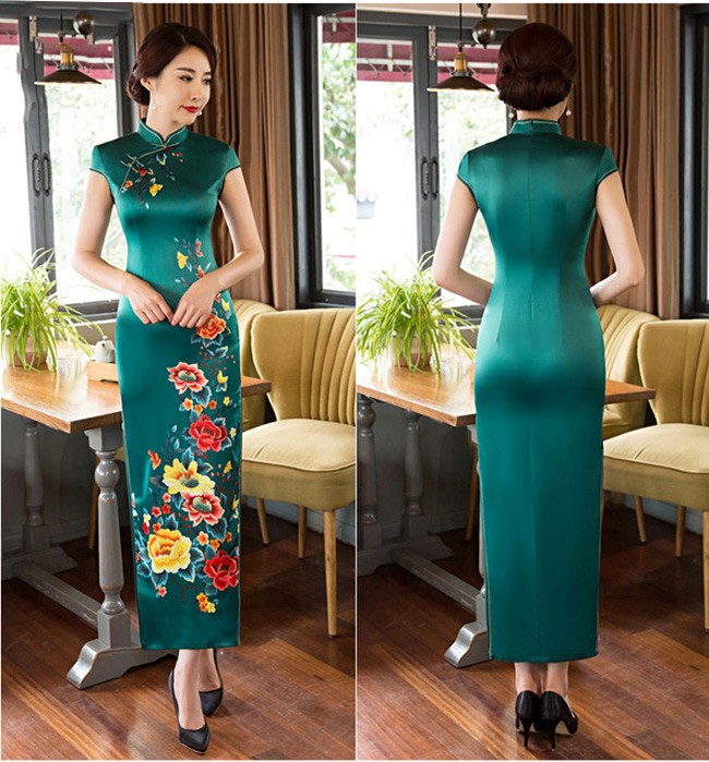 華やかな上品な花草柄が施されたロング丈のチャイナワンピース!