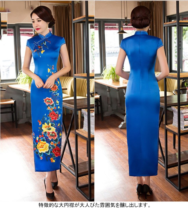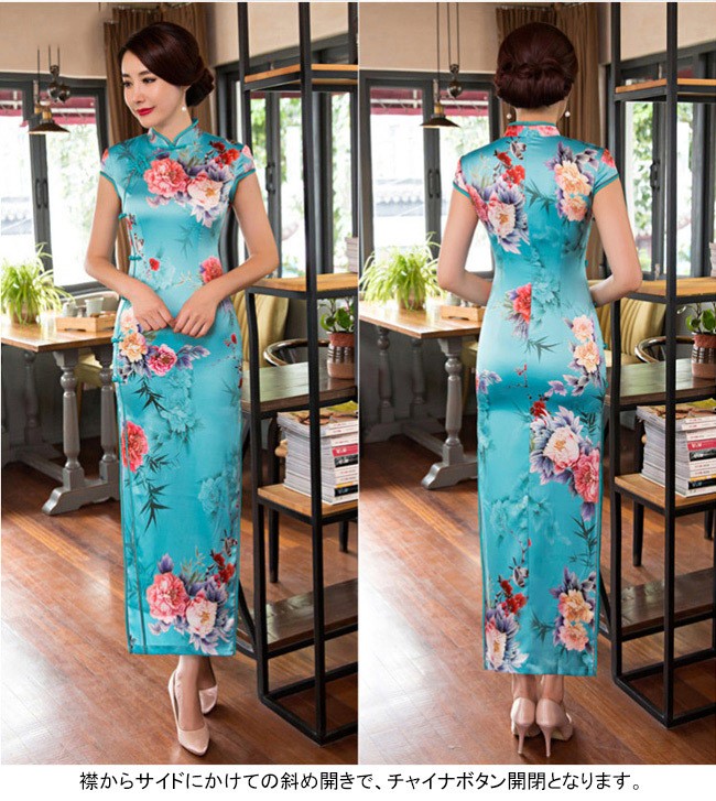 | 商品名 | チャイナワンピース チャイナドレス 旗袍 レディース ロング丈 大花柄 大人シルエット 半袖 サイドスリット エレガント コスプレ |