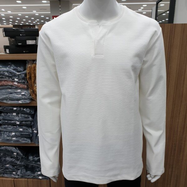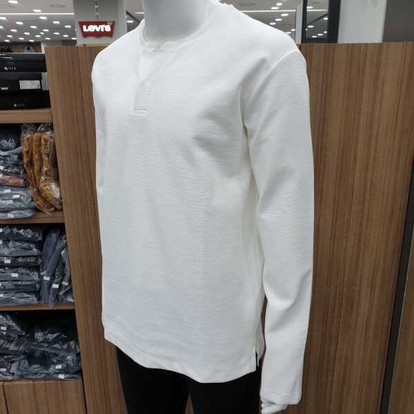 NIX 2019년 봄 신상 입니다. 앞넥부분이 자연스럽게 벌어진 형태로 꼬마스냅으로 오픈가능. 스판이 들어가 톡톡하고 편안한 티셔츠 입니다. 마네킹 100size 착용