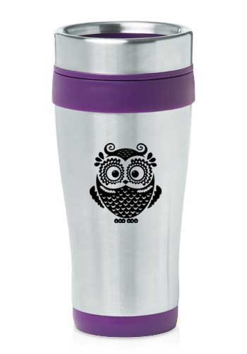 -. Title : Purple 16oz Insulated Stainless Steel Travel Mug Z2335 Owl Vintage