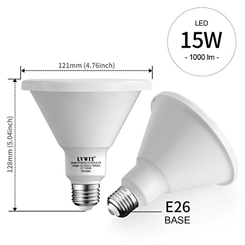 LVWIT PAR38 LED Bulb Dimmable Daylight 5000K 15W Spot Light Bulb 100W Equivalent E26 Screw Base 1000 Lumens Recessed Lights, 5 Year Warranty, UL-Listed Pack of 6