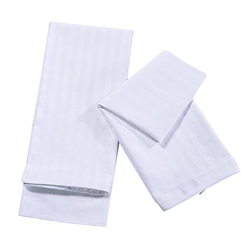 Cotton Pillow Cases 400 Thread Count Striped Pillow Protectors, Soft Comfortable Breathable Bed Pillowcases, Hypoallergenic, Simple and Durable with Zipper, Set of 2 (Standard Size, White)