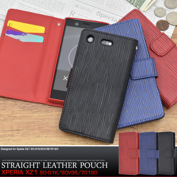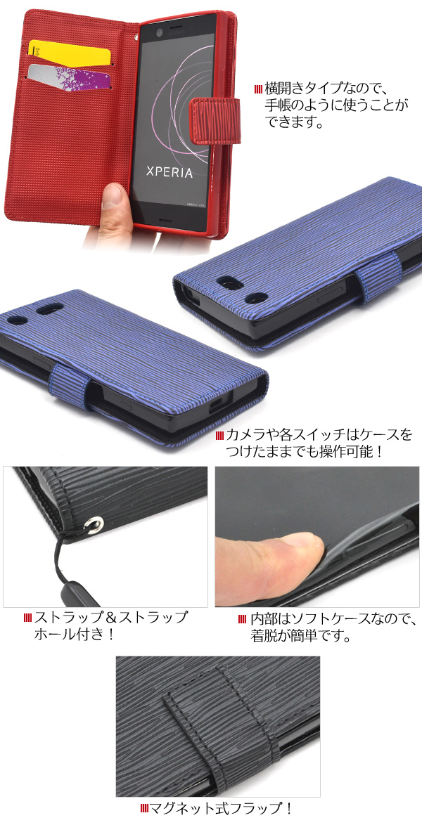 Xperia XZ1 Compact SO-02K用ストレートレザーデザイン手帳型ケース