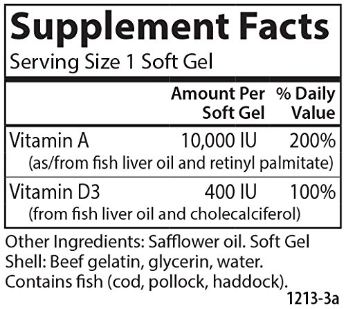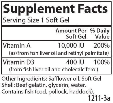 -. Brand : Carlson -. MPN : 121 -. PartNumber : 121 -. ProductGroup : Health and Beauty -. ProductTypeName : DIETARY_SUPPLEMENTS -. Title : Carlson Vitamins A & D 10,000 IU + 400 IU