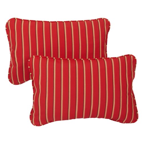 Mozaic Corded Indoor/Outdoor Lumbar Throw Pillows, 13 by 20-Inch, Red/Gold Stripe, Set of 2