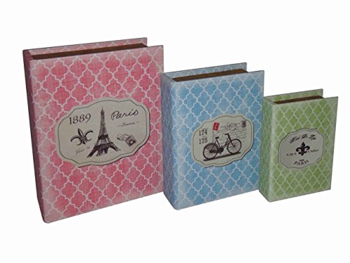 Cheung's FP-4054-3 Book Box with Eiffel Tower/Bike/Fleur De Lis Design| Set of 3| Multicolored