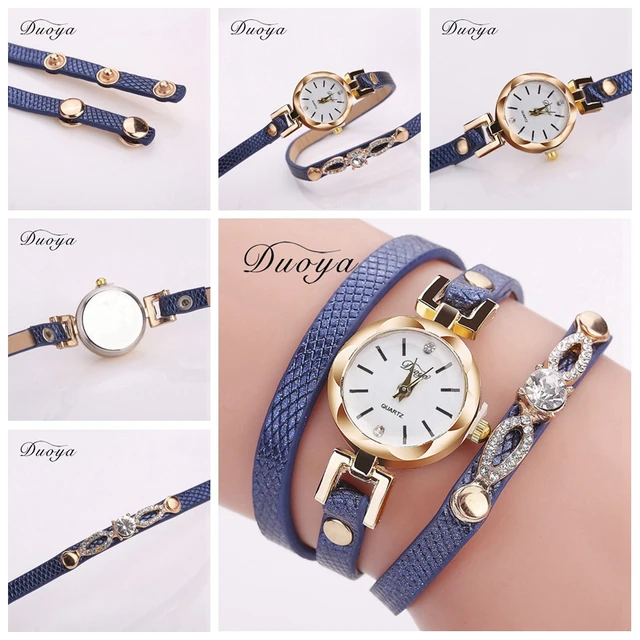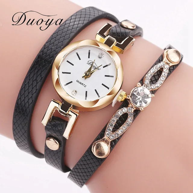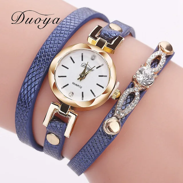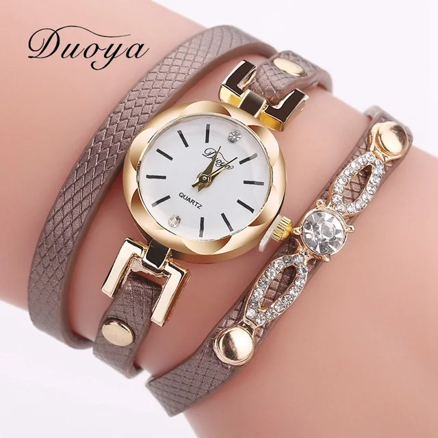 | [해외] 팔찌 시계 Duoya 여성 브랜드 럭셔리 골드 드레스 크리스탈 석영 손목 시계 여성 패션 간단한 빈티지 캐주얼 시계 2017 |