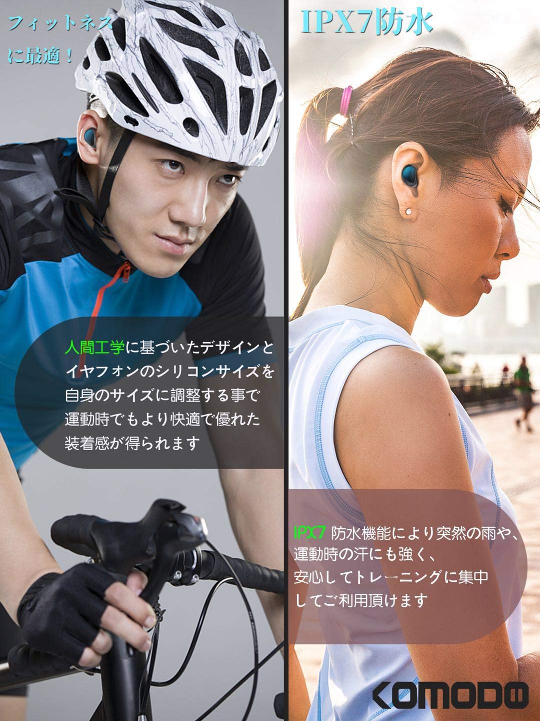 ●【人間工学に基づいたデザイン&IPX7等級防水】 KOMODO人間工学に基づいたデザインとイヤフォンのシリコンサイズを自身のサイズに調整する事で運動時でもより快適で優れた装着感が得られます。片耳で僅か約3gだけで耳への負担を最小限し、長時間付けても重さを感じせず、移動中も落とす心配がなく使用可能、快適で安定した装着性を実現します。1200mAh充電ケースは収納充電両用、持ち運びも便利です。IPX7防水機能により突然の雨や、運動時の汗にも強く、安心してトレーニングに集中してご利用頂けます。