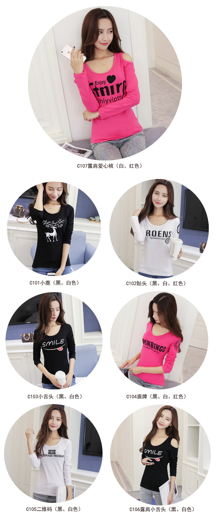 2) C107 - Black, White, Rose Red = Off Shoulder with Enjoy words with Love Shape