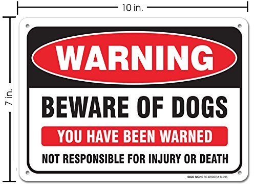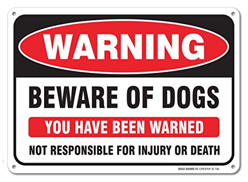 Beware of Dog Sign, Large 10x7" Aluminum, For Indoor or Outdoor Use - By SIGO SIGNS