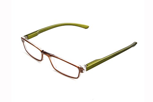 Hot Optix Unisex 2-toned Reading Glasses, Brn frame/Green temple, +1.50