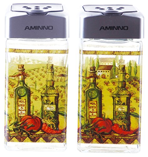 - High quality glass salt and pepper shakers with beautiful kitchen theme print