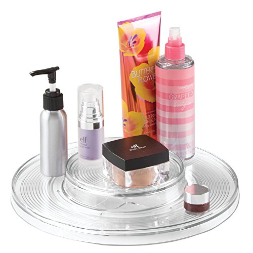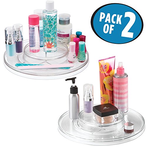 mDesign Lazy Susan 2-Tier Cosmetic Turntable Organizer for Bathroom Vanity - Pack of 2, Clear