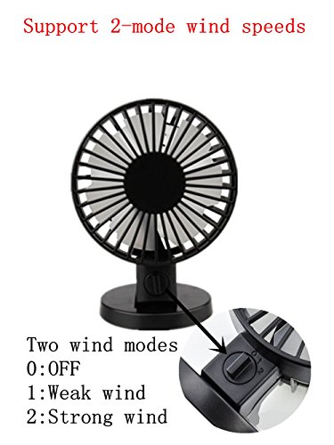 LingsFire® USB Powered 2-Mode Speed Adjustable Double Blades Mini Desk Fan Portable Ultra-Quiet Cooling Fan for PC Laptop Notebook Power Bank (Black)