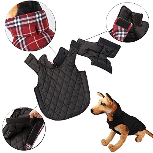 -. Feature : SUPERIOR MATERIAL: Polyester+TC ( terylene / cotton ), it's soft, durable, fashion, vintage, waterproof, fine in detail, lightweight, wind-proof. / POWERFUL FUNCTIONS: Reversible, can two sides wearing, it has water resistant outer layer, soft and warm Inner Layer, with neck and belly fully adjustable velcro closures for adjustable fit. / TARGET AUDIENCE: Provide multi-size to choose, it suitable for Various breeds of dogs, and the most is best suited for small to medium breeds. / CONVENIENCE: Easy to wear, and it can machine washable, free your hand from the cold water. / SURPRISE FOR YOUR DOG: A great gift for your lovely dogs, very soft, comfortable and Warm, extremely cute and cool!