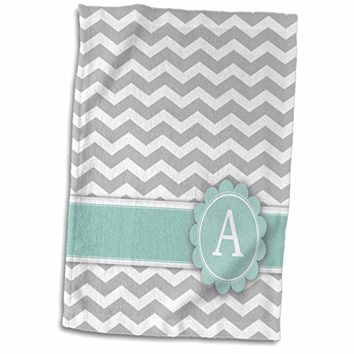 3D Rose Letter a Monogram on Grey and White Chevron with Mint-Gray Zigzags-Zig Zags Personalized Initial Towel, 15" x 22"