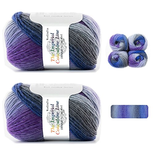 Gradient Rainbow Soft Wool Yarn Self-striping Yarn for Crochet Knit,Color: Night Sky(2 Skeins)