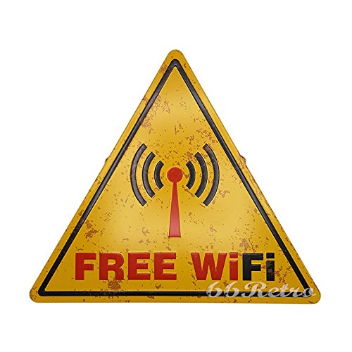 66Retro Free Wifi, Embossed Triangle Metal Tin Sign, Vintage Wall Decorative Sign