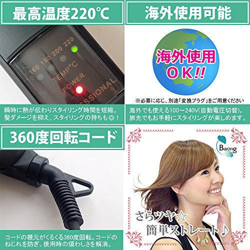 Barong 프로 사양 Max220℃ 마이너스 이온 스트레이트 헤어아이론(고데기) 티타늄 플레이트 해외 겸용