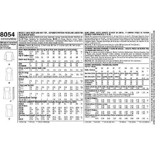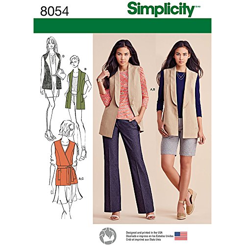 Simplicity Patterns Misses' Lined Vests and Knit Top Size: K5 (8-10-12-14-16), 8054