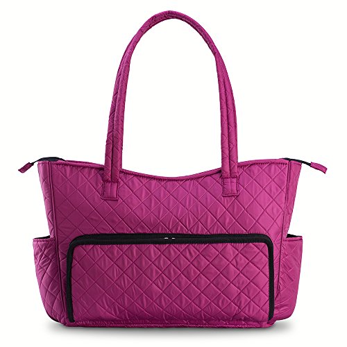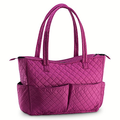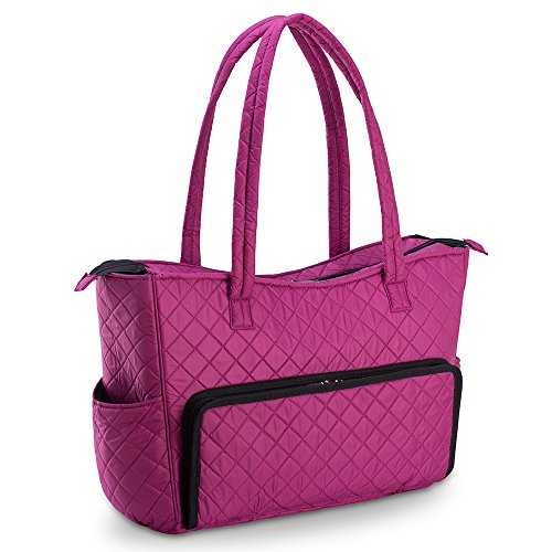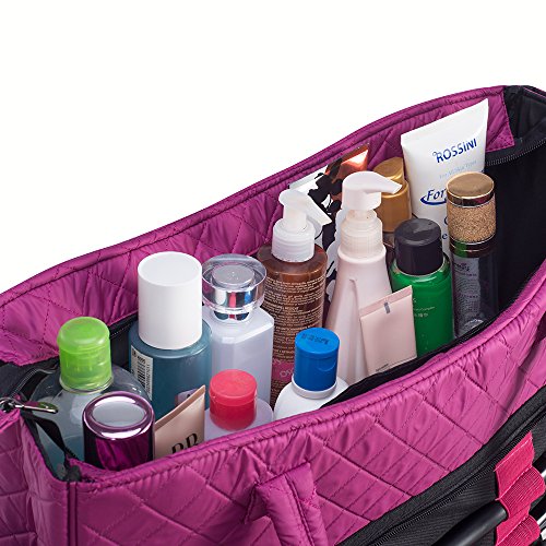 KIOTA Beauty Bag - Ideal for Bottles - Makeup Brush Storage Pocket and Outer Pockets - Quilted Finish Shoulder Bag Cosmetic Organizer - Orchid