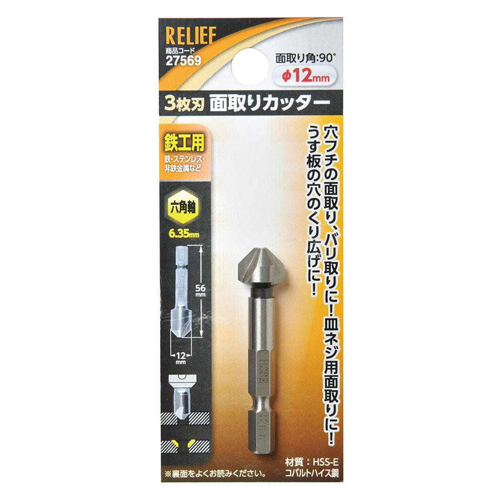 fk094igrjs穴フチの面取り、バリ取りに最適うす板の穴のくり広げにも使える面取りカッターです サイズ Φ12mm、全長:56mm 個装サイズ:5×12×3cm 重量 個装重量:31g 素材・材質 コバルトハイス鋼(HSS-E) 仕様 鉄工用 六角軸(平径6.35mm) 面取り角度:90度 製造国 中国 鉄工用の面取りカッター 穴フチの面取り、バリ取りに最適うす板の穴のくり広げにも使える面取りカッターです