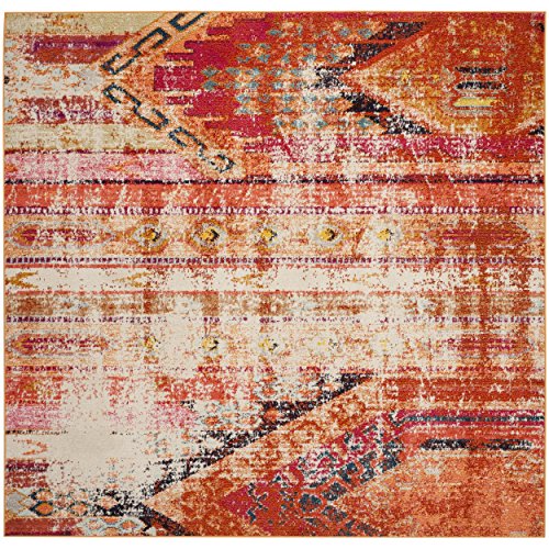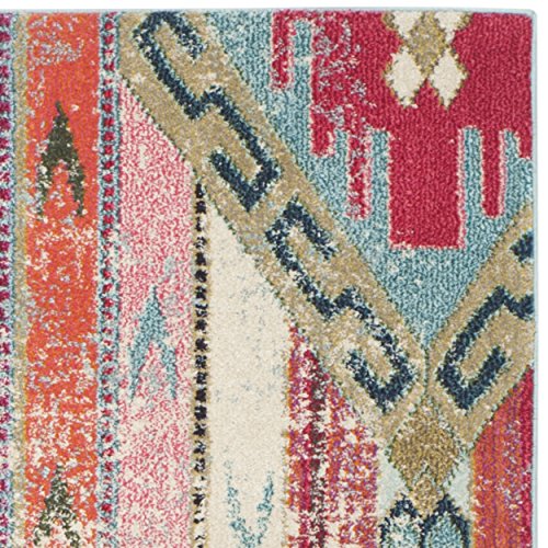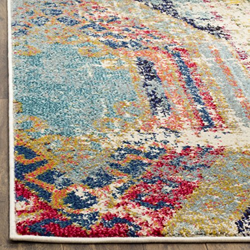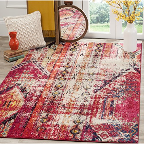 Free-spirited and boldly colored, this rug from Safavieh’s Monaco Collection brings Bohemian-chic flair to contemporary and transitional home décor. Featuring neutral hues of cream, black, and sage, and more vibrant hues of pink, blue, and orange, and yellow, this rug is truly a work of art.