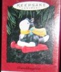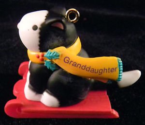 Hallmark Keepsake Christmas Ornament Granddaughter Black Cat on Sled 1996