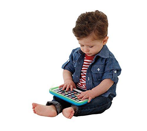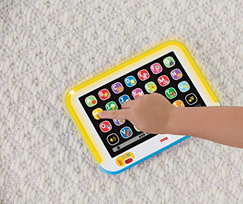 Baby's first tablet introduces letters, first words, animals and more! Introducing Baby's very own tablet-the Fisher-Price Laugh & Learn Smart Stages Tablet! This tablet includes Smart Stages technology, an exciting new way to change the learning content as baby grows! Because every baby develops at their own pace, Smart Stages technology gives you the ability to select the stage that's best for your child! There are a variety of developmentally appropriate songs, phrases and sounds within three levels of play. Baby can press one of 28 "app" buttons to activate sounds and music - and unlock learning about letters, first words, animals and more. To add even more fun, the tablet screen will light up and twinkle along to the songs and phrases.Feature